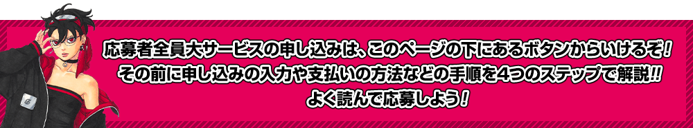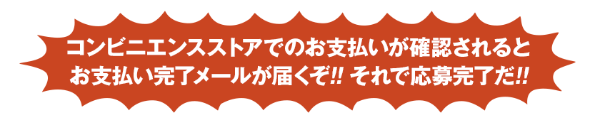 「お支払い手続きのお知らせメール」をよく読んで、Vジャンプ応募者全員大サービス応募サイトで選択したコンビニエンスストアへ行き、応募者負担金を支払おう。