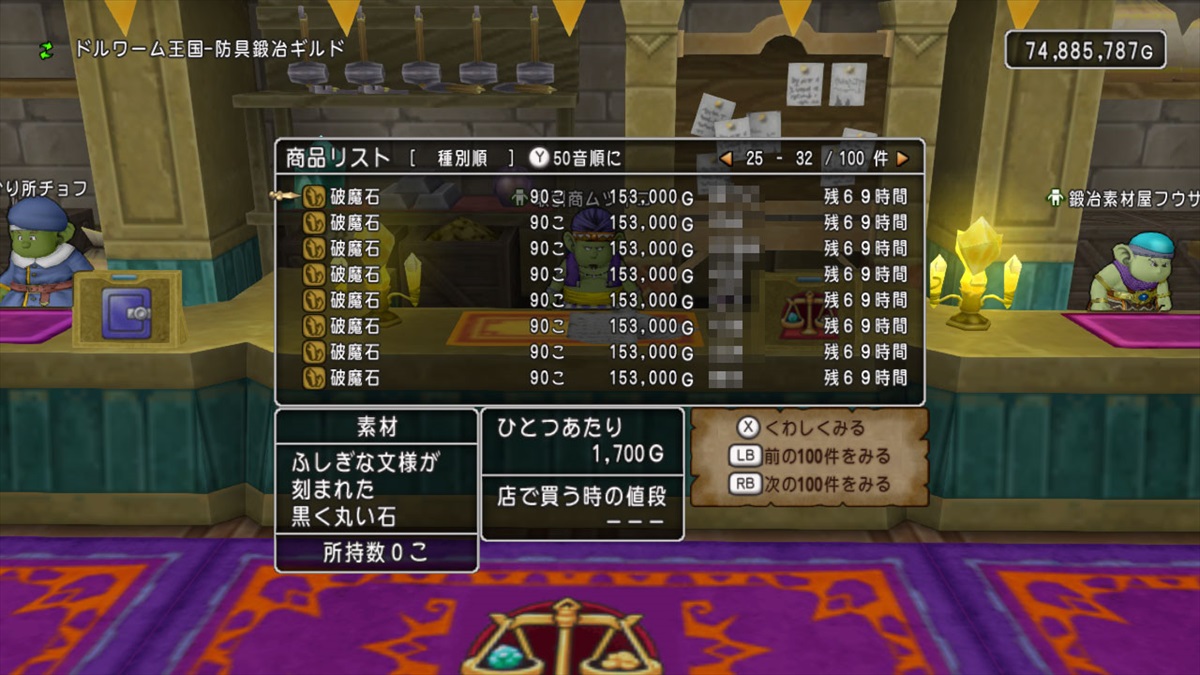 ・破魔石(10月8日以前:1750G前後→今週:1700G前後)