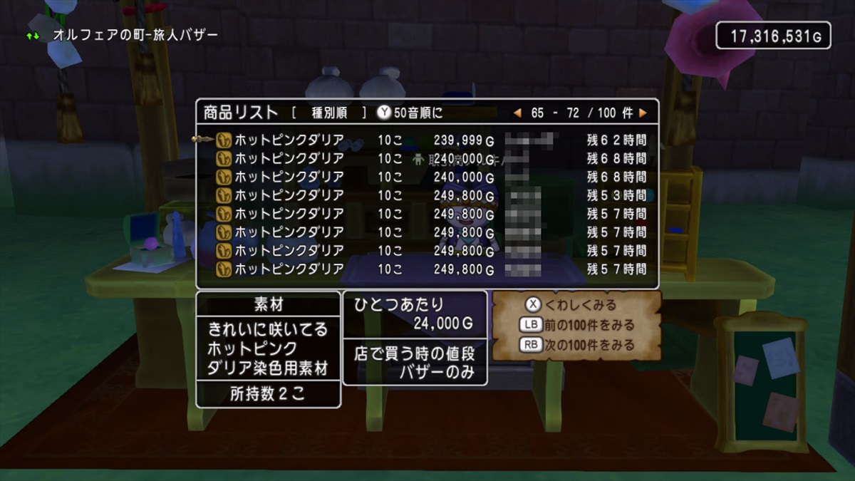 バレンタインイベントやアストルティア・プリンセスコンテストの応募が始まり、カラーリング用の花は全体的に値上がり傾向のようだ。