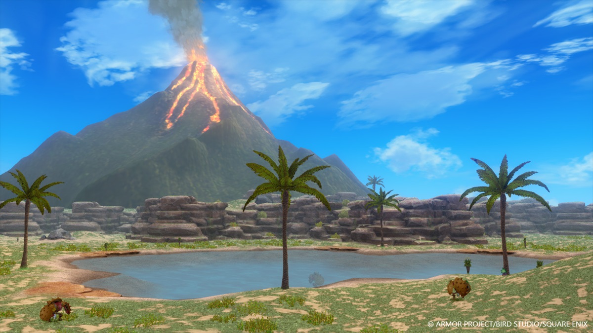王国の周辺には火山やオアシス、砂漠などの光景が。