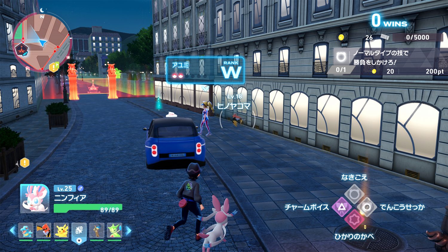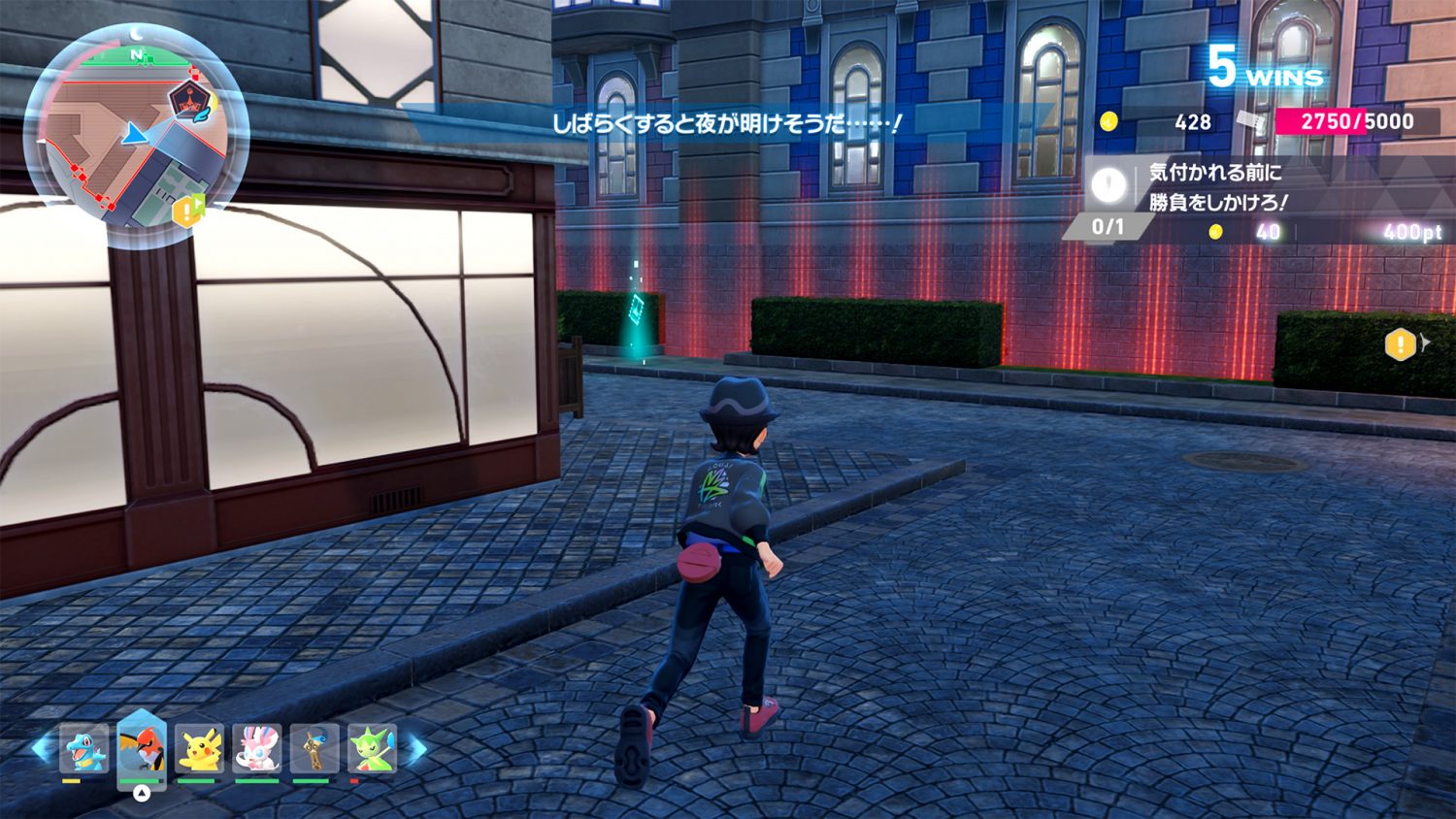 夜:「バトルゾーン」で「ZAロワイヤル」参加者のトレーナーと勝負してポイントを稼ぐ