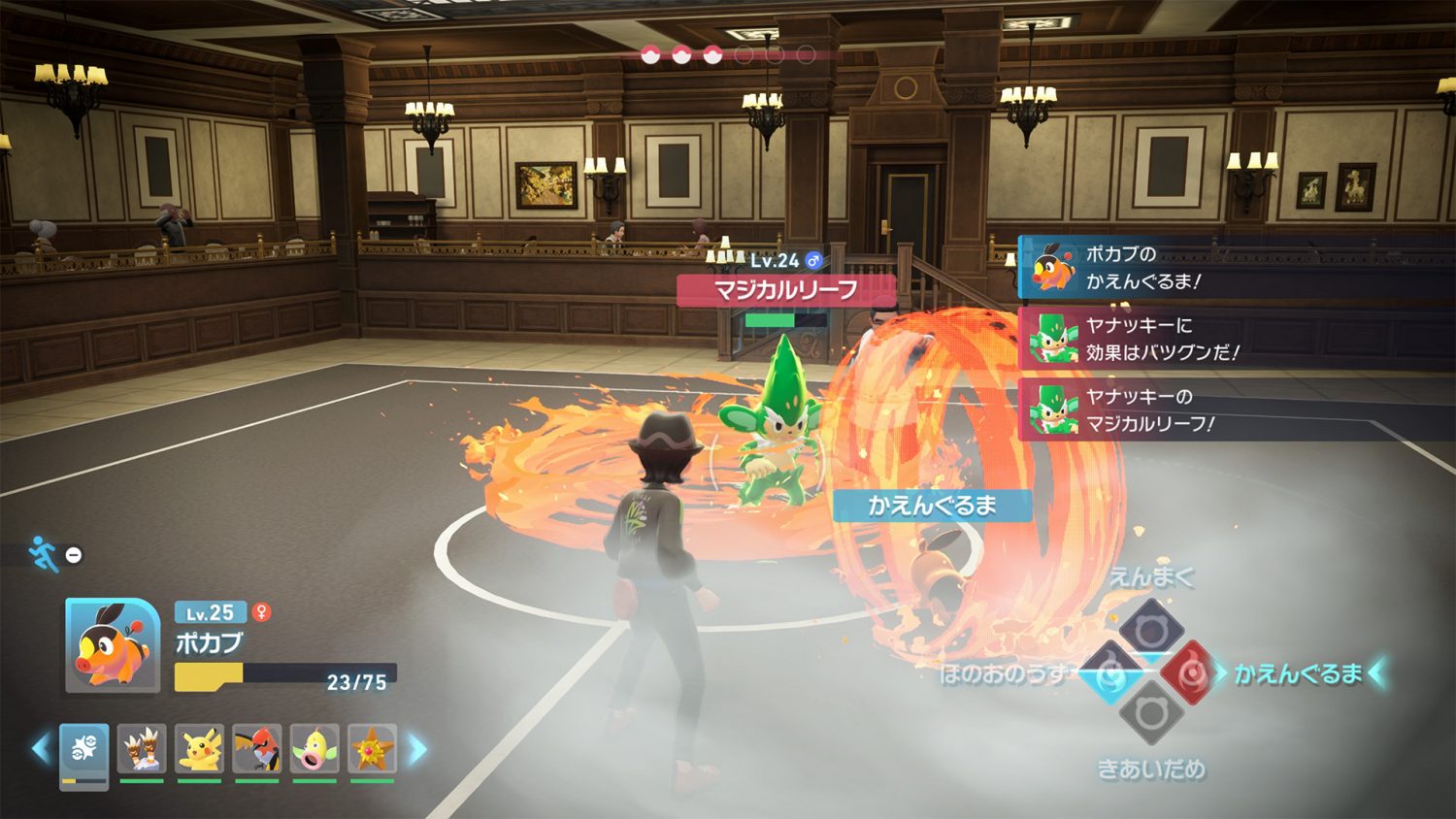 ・ポケモン操作(技の使用)とキャラクター操作(ダッシュ、ローリング)を切り替えながらの立ち回りを意識したい