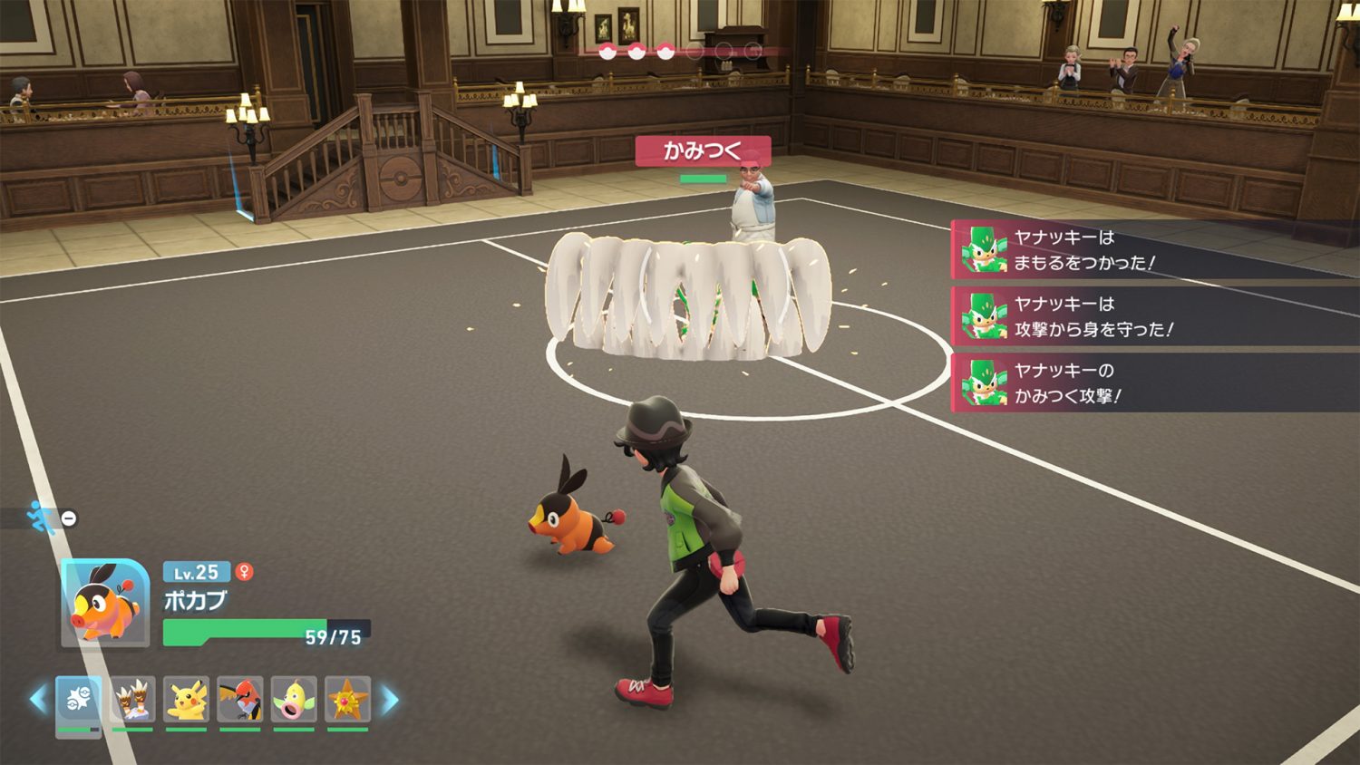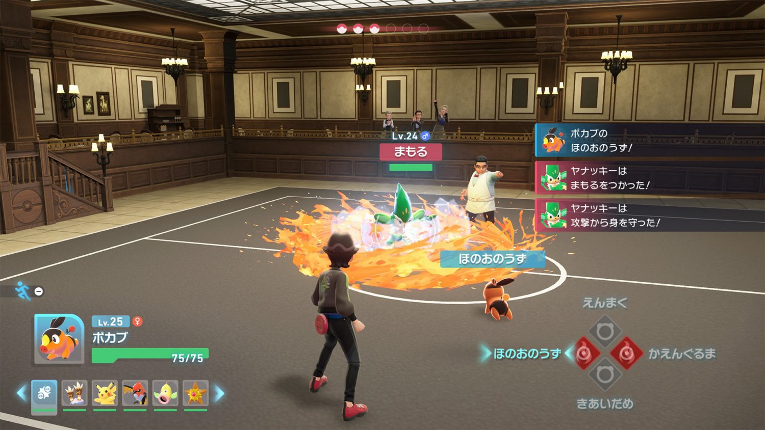 相手からの攻撃はダッシュやローリングで避けていく必要があるが、ロックオン中にはダッシュやローリングができないため、一度ロックオンを外す必要がある。最初はここが間違えてしまいやすく、ロックオンしたまま回避しようとしてポケモンの技を使ってしまうことが何度もあった。