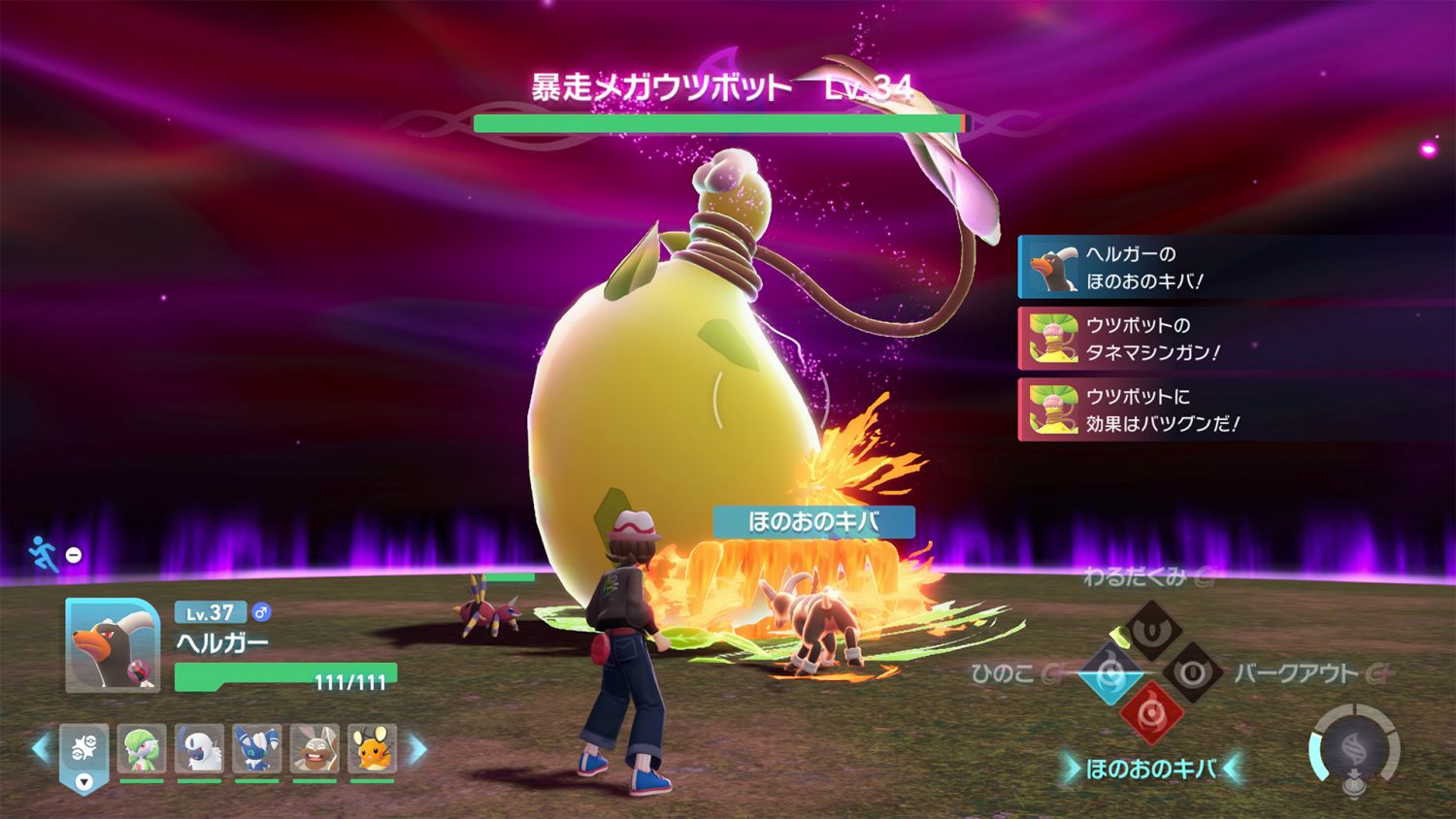 ストーリー展開の過程で発生するイベント戦のようで、試遊では暴走メガシンカしたメガウツボットをMZ団の仲間であるピュールと一緒に戦うというシチュエーションだった。