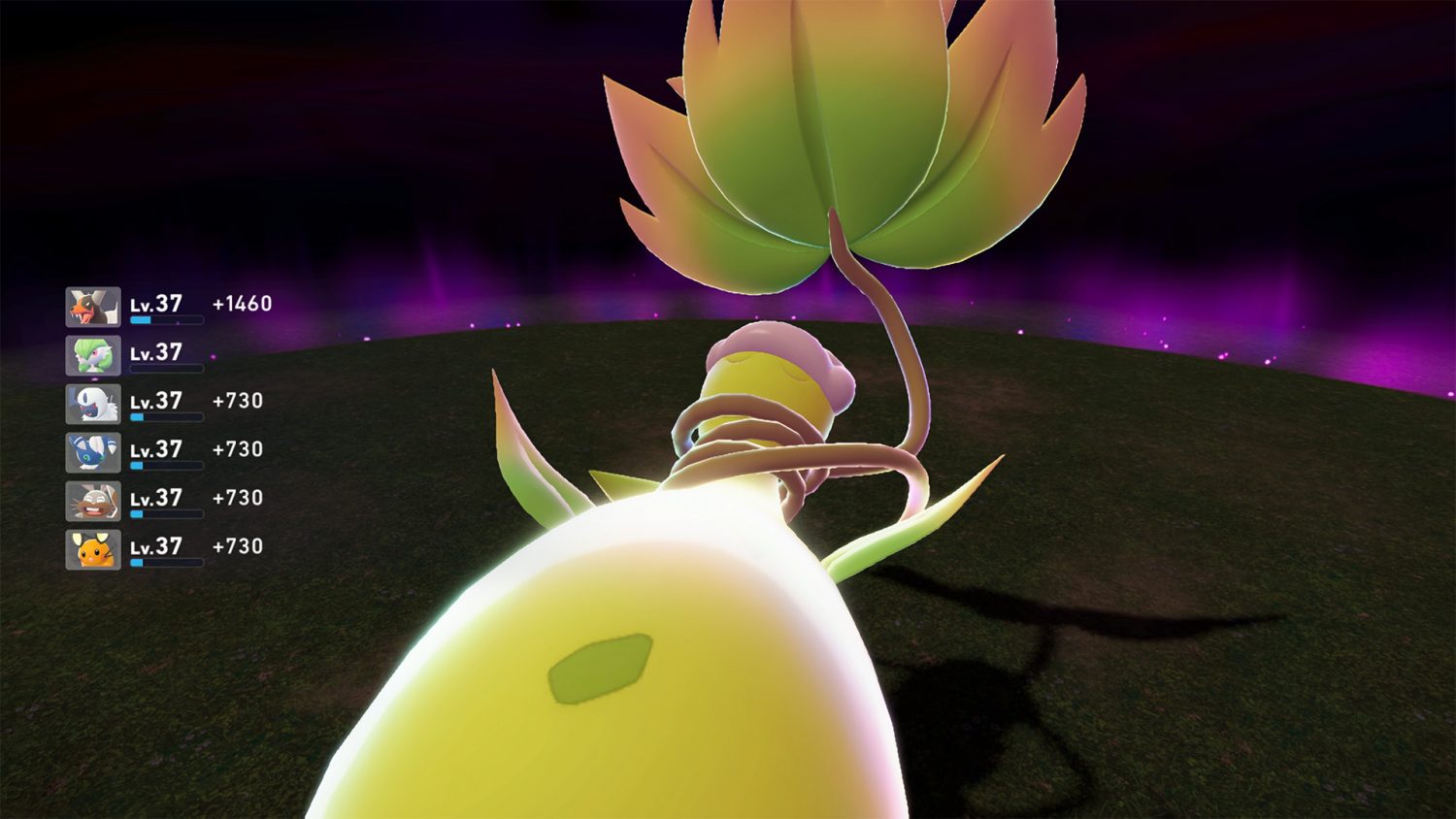 経験値は控えポケモン全員が入手でき、最後に場に出ていたポケモンが一番多く入手できる模様。レベルによる経験値補正もあり。上の写真でチコリータの経験値が少し多いのは、なかよし度の補正によるものだろうか。