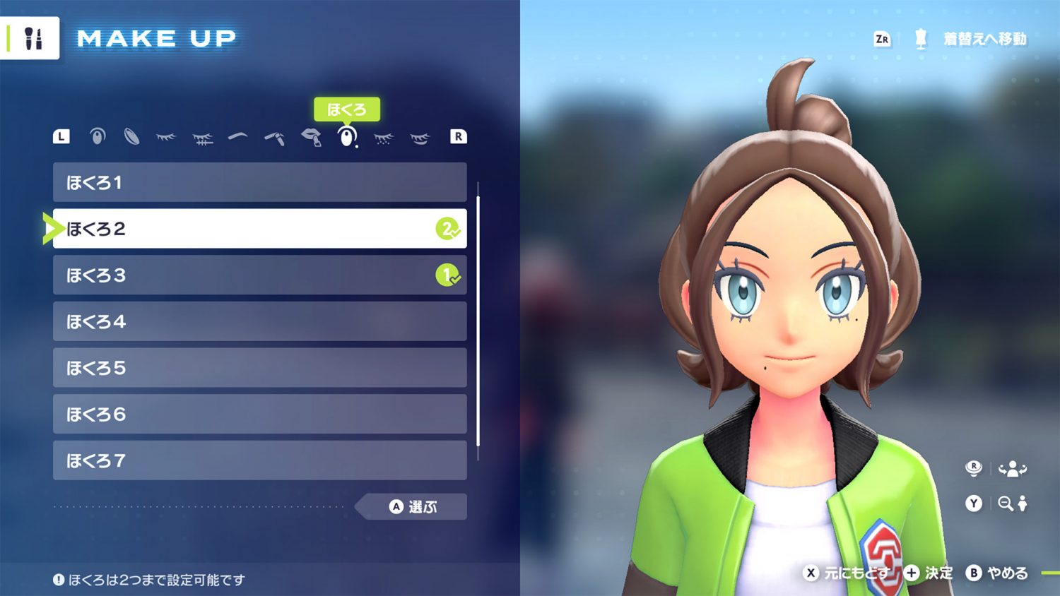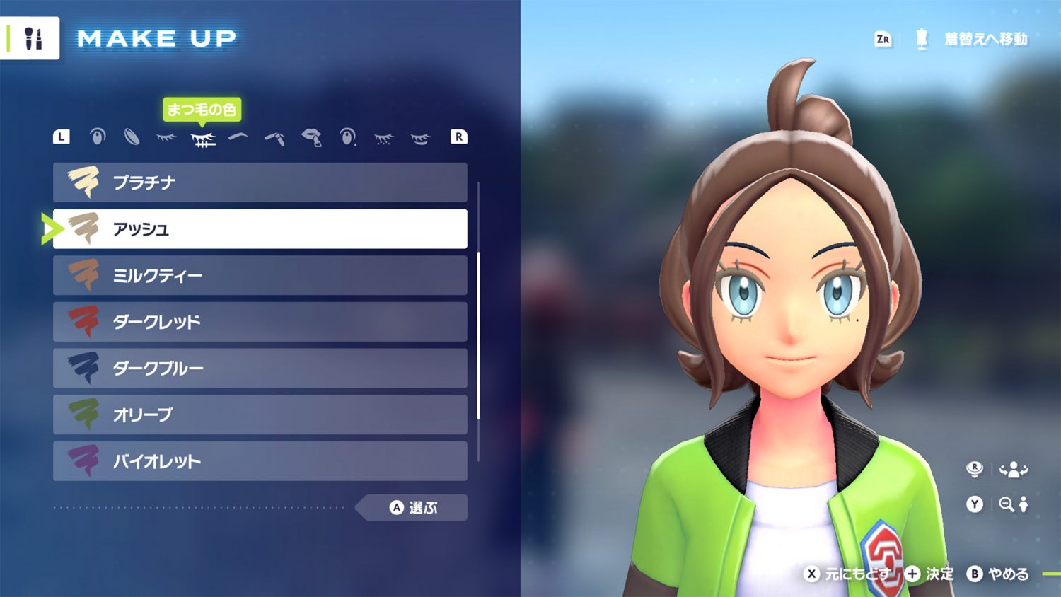 メニュー画面で-ボタンを押すとプレイヤーの着せ替えやメイクが行える。