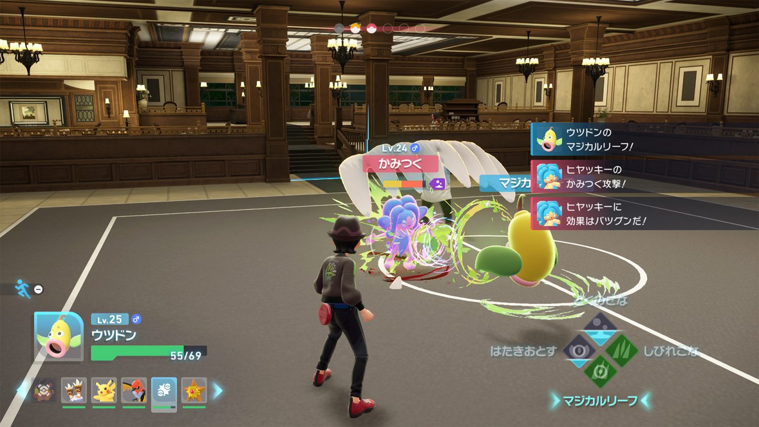 ボルトチェンジ:技の使用後にトレーナーの近くへ一瞬で戻るという性能になっている。あらかじめトレーナーが離れた位置にいることで、うまくタイミングが合えば相手の攻撃を避けることができそうだ。「テレポート」も同じようにトレーナーの元へ一瞬で戻る技だが、こちらは発動までに時間があった。