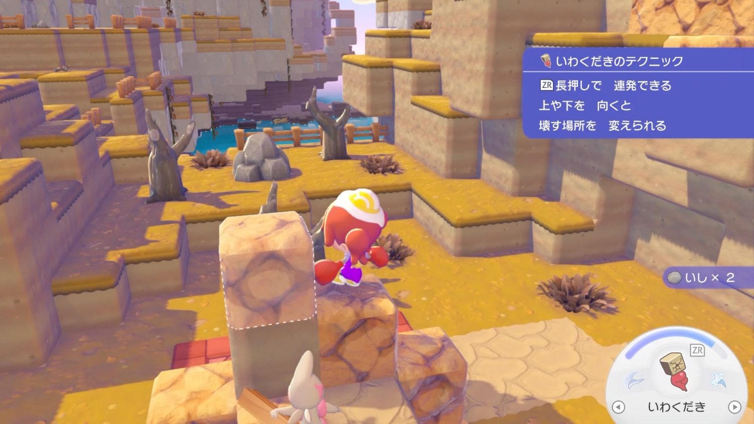 ドッコラーの「いわくだき」の場合、正面だけではなく上下方向にある岩なども壊すことができる。