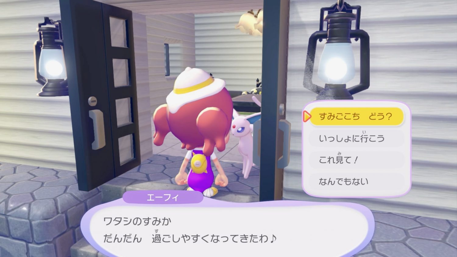 室内では家具を自由に配置できる。ポケモンは「おひっこし」も可能なようで、現在すんでいる生息地から「いっしょに行動する」で別の場所へ連れていくことで、移住先を変えることができるようだ。これは家→家だけでなく、自然→家、家→自然など自由に行える模様。