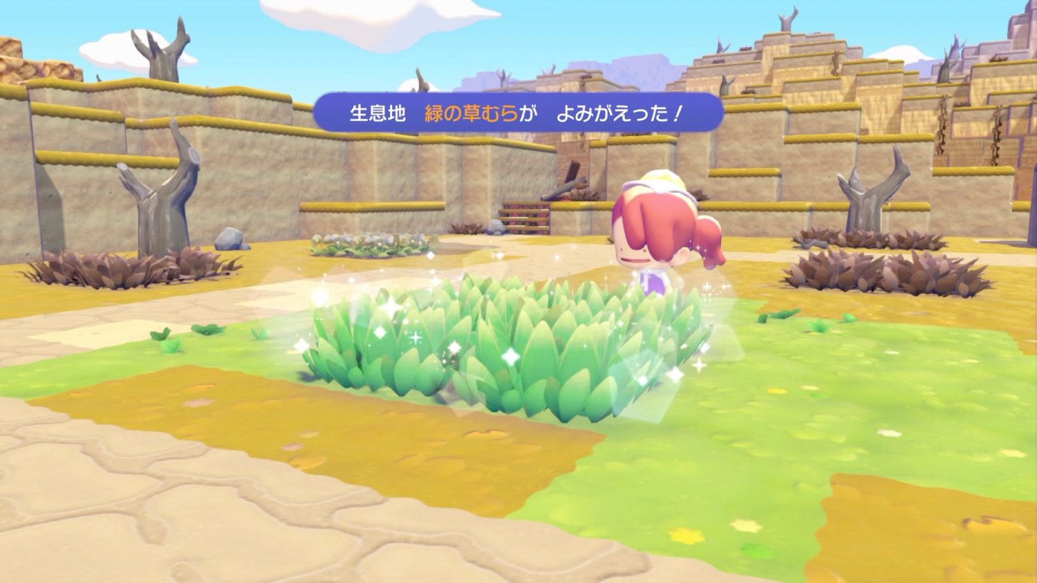 4つの地面に草を生やしてみると、生息地「緑の草むら」がよみがえりました。特定の配置によってポケモンの生息地がよみがえるようです。