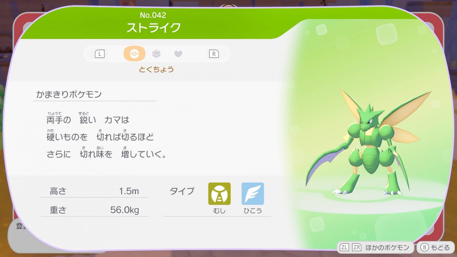 出会ったポケモンはポケモンずかんに登録され、「とくちょう」「出会える場所」「特技と好み」の項目を確認できるようになる。