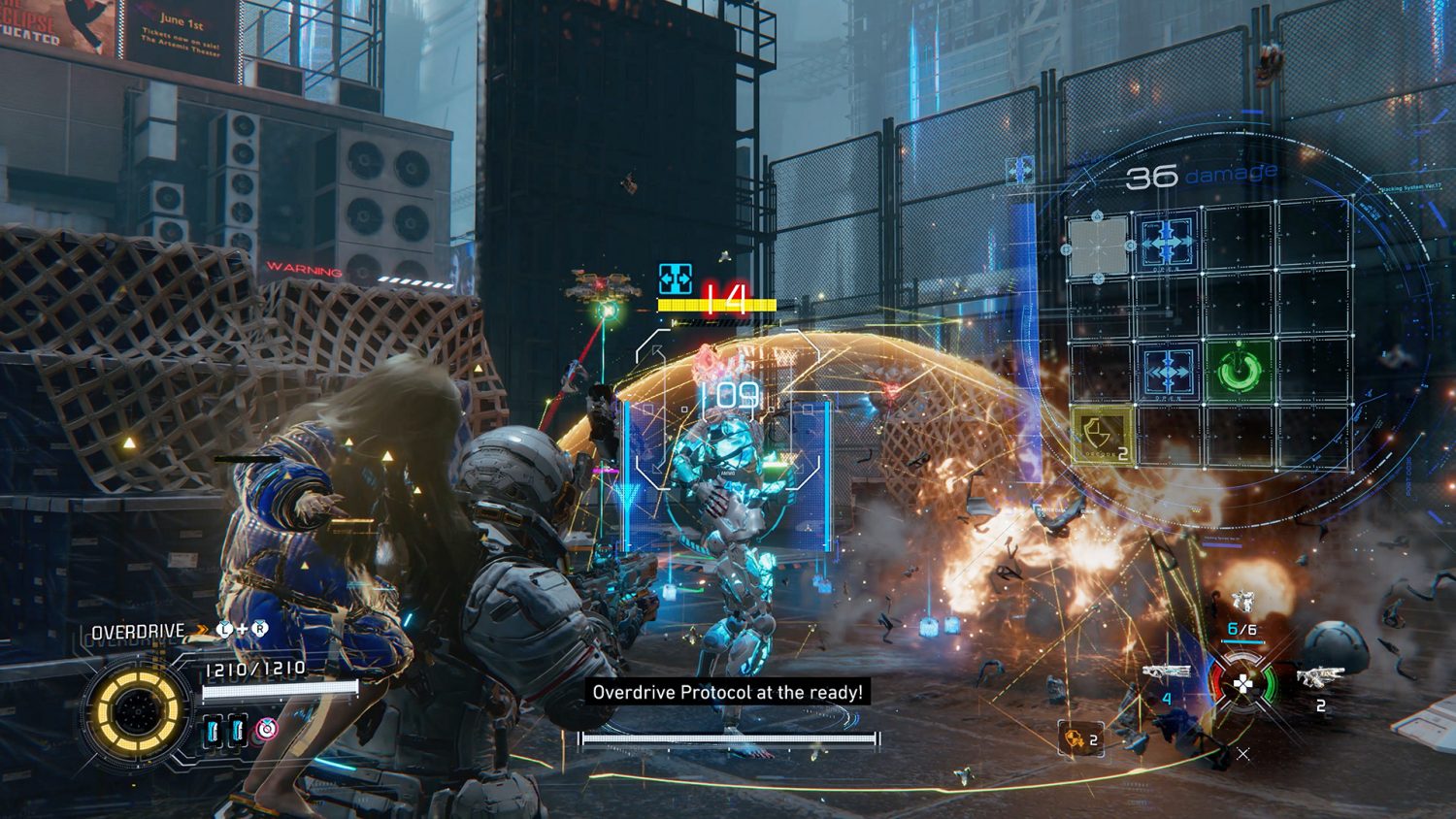 趙 まずSFアクションをテーマとする場合、基本的にはガンシューティングの要素が必須になります。ただ、銃を撃って敵を倒すだけだと一般的なアクションゲームと差別化ができないので、「ああしよう、こうしよう」と戦略的に考えながら戦えるゲームにしたかったんです。そこでハッキング要素が加わる形となりました。