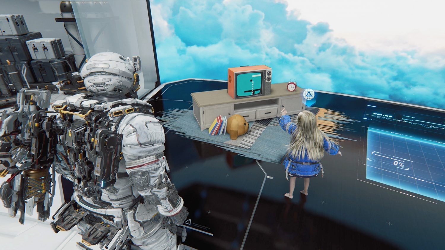 趙 まず月面を舞台として設定した際に、白黒ばかりの世界でビジュアル的にどういう風に面白くするかという部分は結構悩みました。主人公のヒューも白い宇宙服ですし。それで相棒のキャラクターを設定することになったんです。最初はドローンから始まり、犬とかいろんな相棒生物を得て、最終的に“裸足の少女”というイメージになりました。靴って人類文化を示すものなので、靴を履いていないということは人類文化に触れていない表現にもなるかと思い。そこから誰かに着せられたサイズに合わないジャケットを着ているというイメージを組み合わせて、今のディアナになりました。