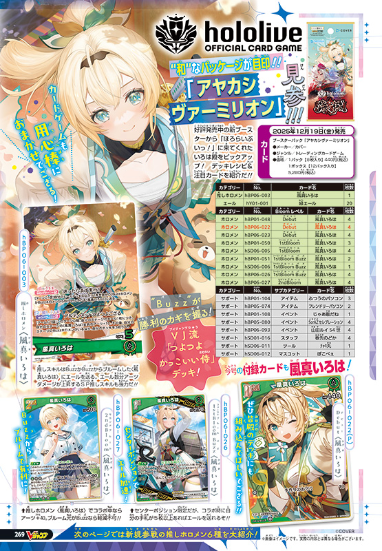 Vジャンプ2月特大号の『hololive OFFICIAL CARD GAME』付録カードは「風真いろは」!! 12月19日(金)発売の最新ブースター「アヤカシヴァーミリオン」収録の“Debutホロメンカード”がVジャンプでしか手に入らない特別な絵柄で登場!